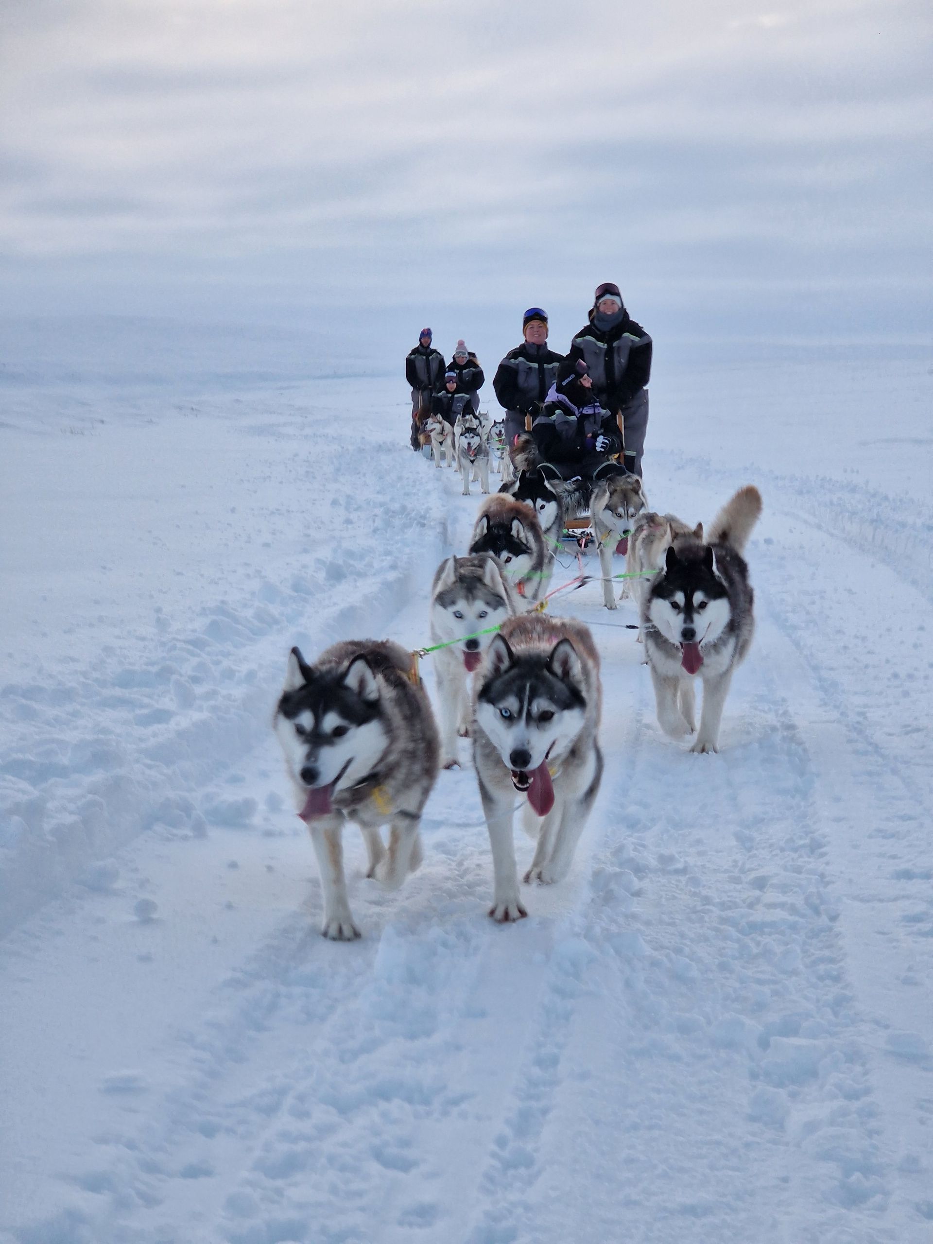 Svala is a hard-working girl born in 2020 a daughter of Krumma and Sauron. She often works as a leader but when we stop she goes „on a break“ and just wanders off to the side into the bushes to see if there is anything interesting there... so I do not let her work with the young dogs in the lead so she does not teach them „bad working ethics“